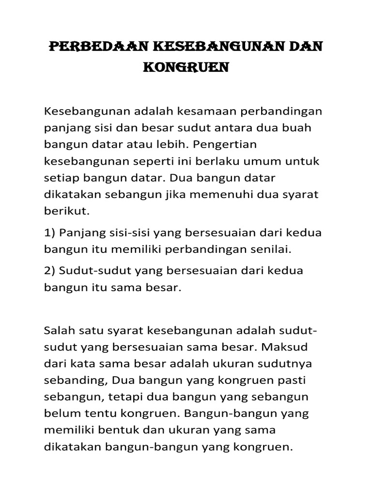 Perbedaan Kesebangunan Dan Kongruen Pdf